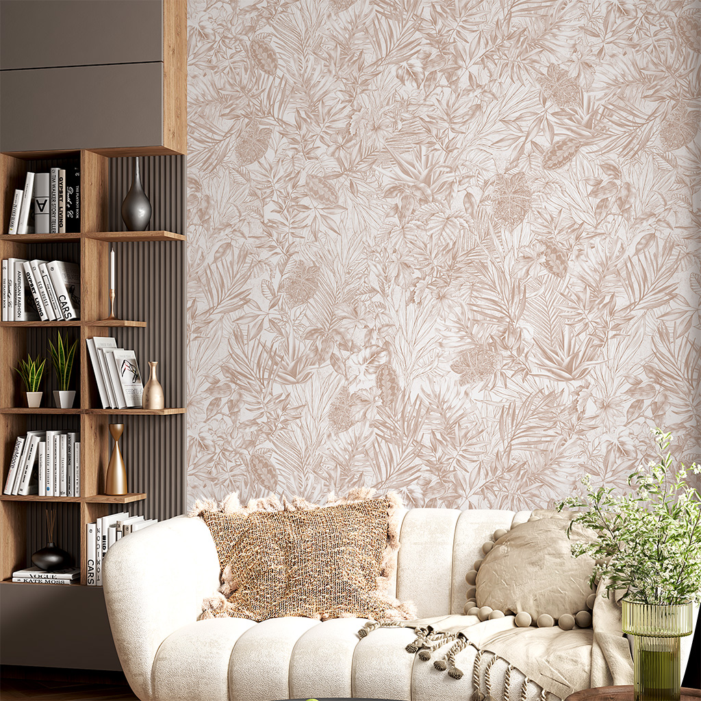 Papel de Parede Personalizado Mix Folhagem Grayscale Areia