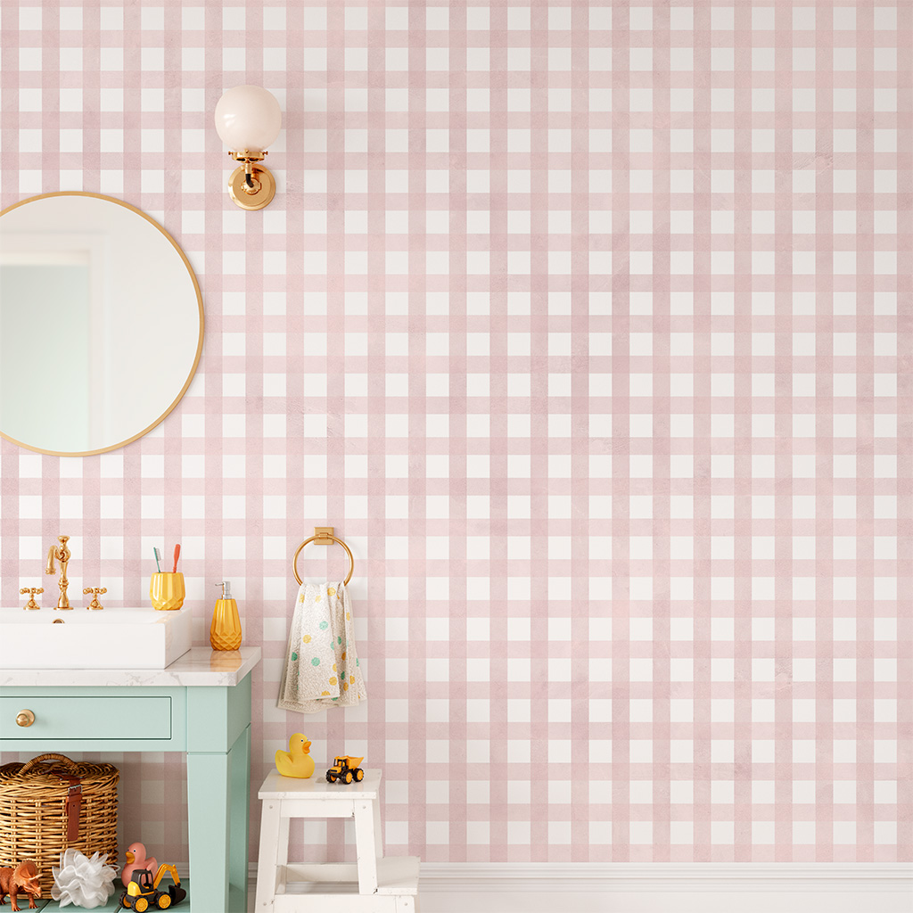Papel de Parede Infantil Personalizado Xadrez Cimento Queimado Rosa