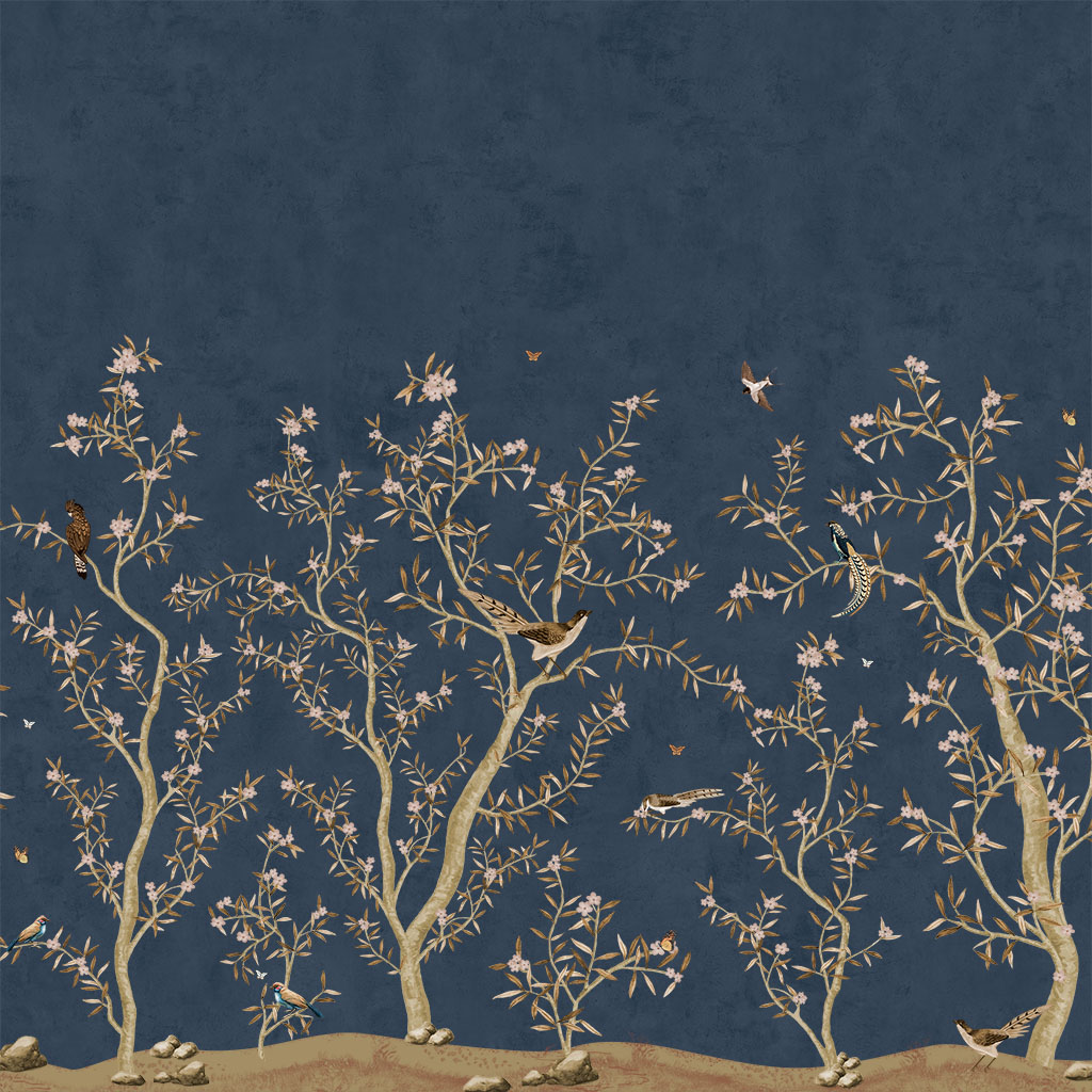 Papel de Parede Personalizado Chinoiserie Azul Marinho