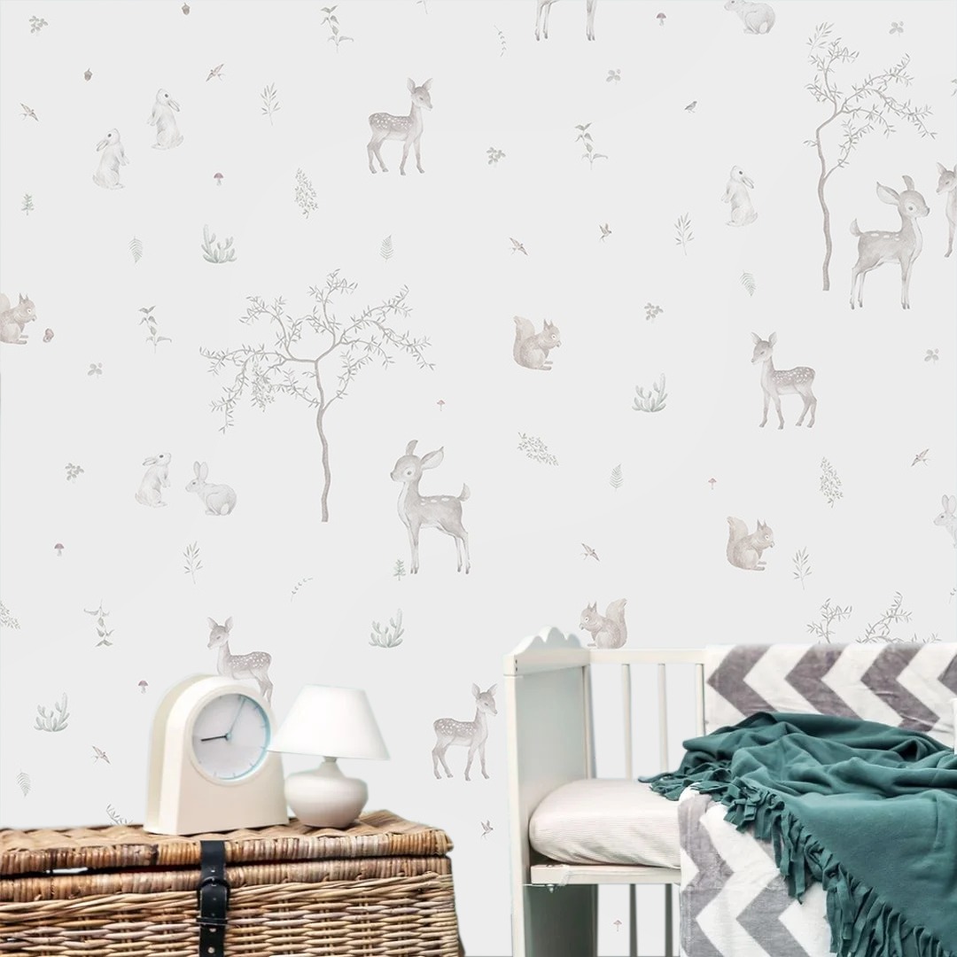 Papel de Parede Quarto Personalizado Infantil - Animais da Floresta